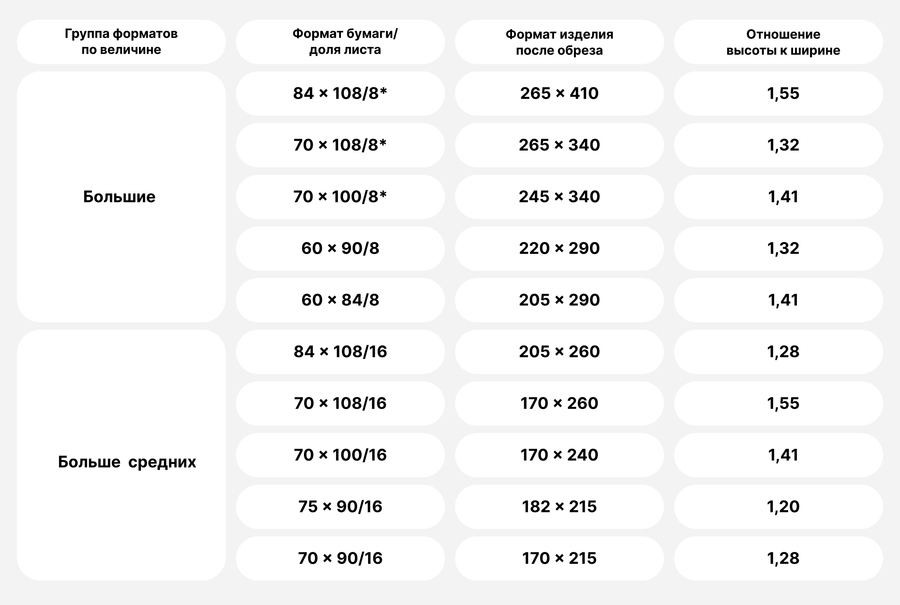 Определившись с темой и примерно понимая контент (материал), мы должны подумать над размером: Это большая / маленькая / средняя вещь? Обратите внимание на содержимое и механику вашего проекта. Они часто сами подсказывают нам размер будущего издания.