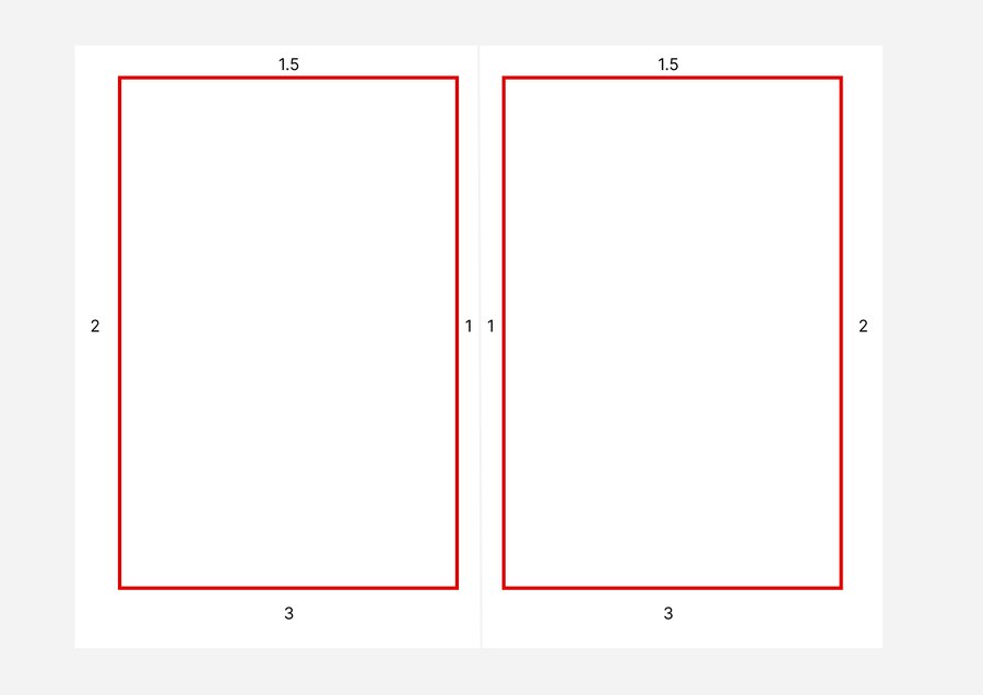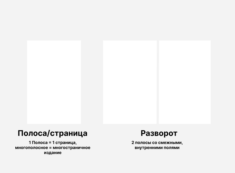Проектирование разворота чаще всего начинается с определения пропорций полей, потому что именно поля определяют границы главного элемента книги — блока основного текста, или полосы набора. Именно она часто является точкой отсчёта для всей композиции разворота и, как следствие, формирует вид издания.