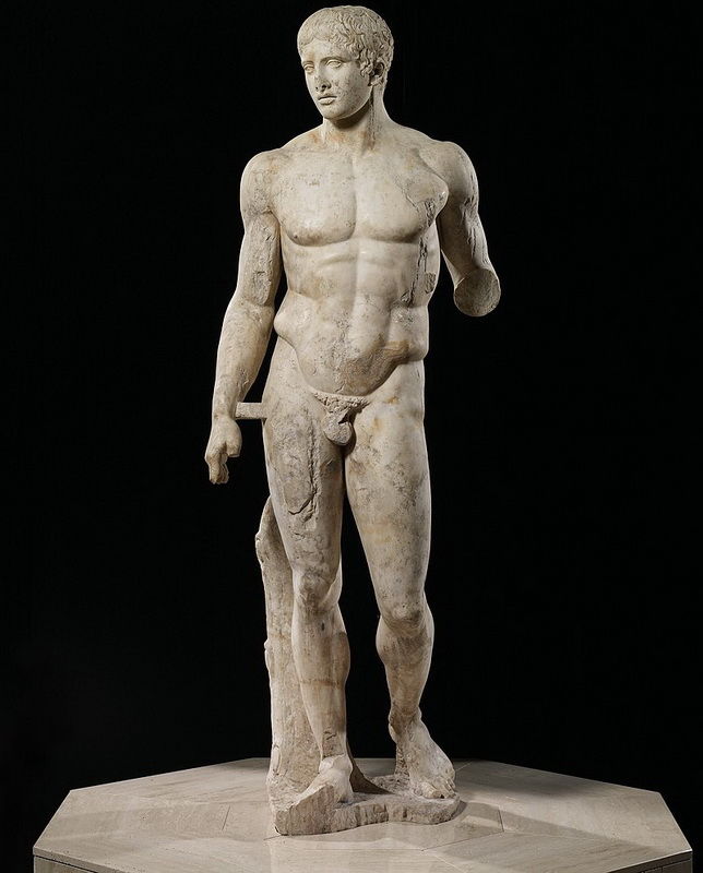 Первое, что возникает в уме, — обращение к древнегреческому искусству. «Преувеличенная манера» Наумана — это контрапост, способ придать скульптурному изображению внутреннюю динамику.