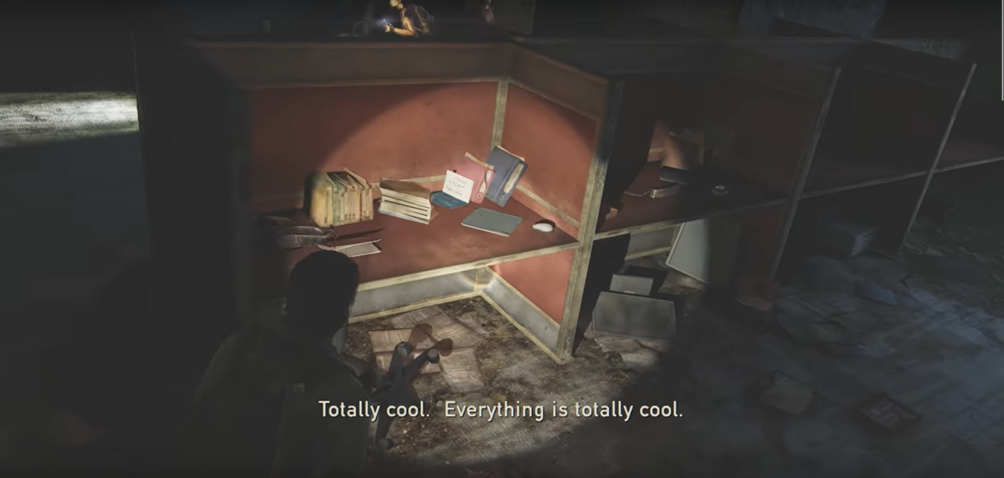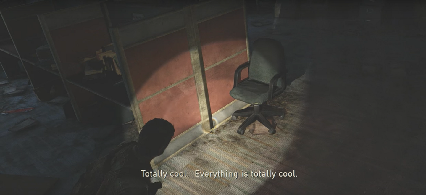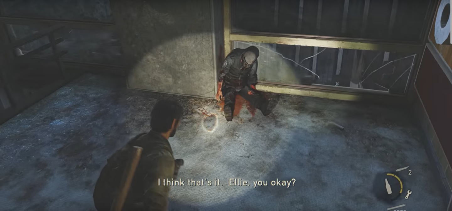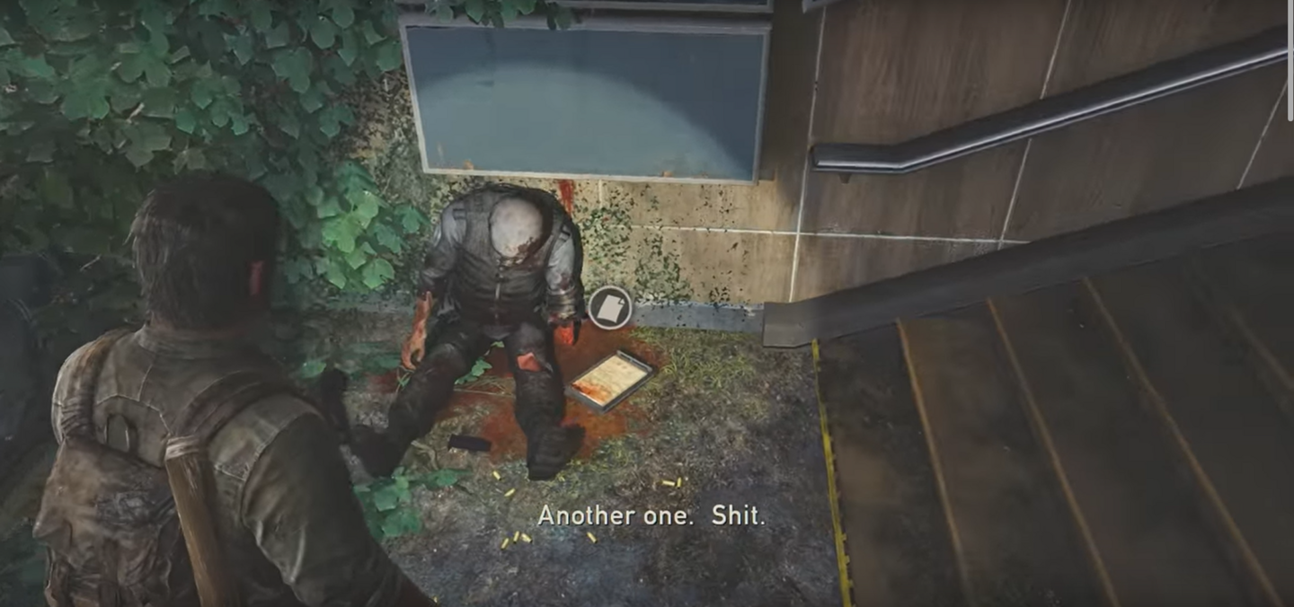 Следующий важный автору жмур, должен познакомить нас с «Кликерами». Поэтому тело не просто выглядит интересно, но еще и загораживает нам дверь. Чтобы игрок наверняка рассмотрел его поближе.