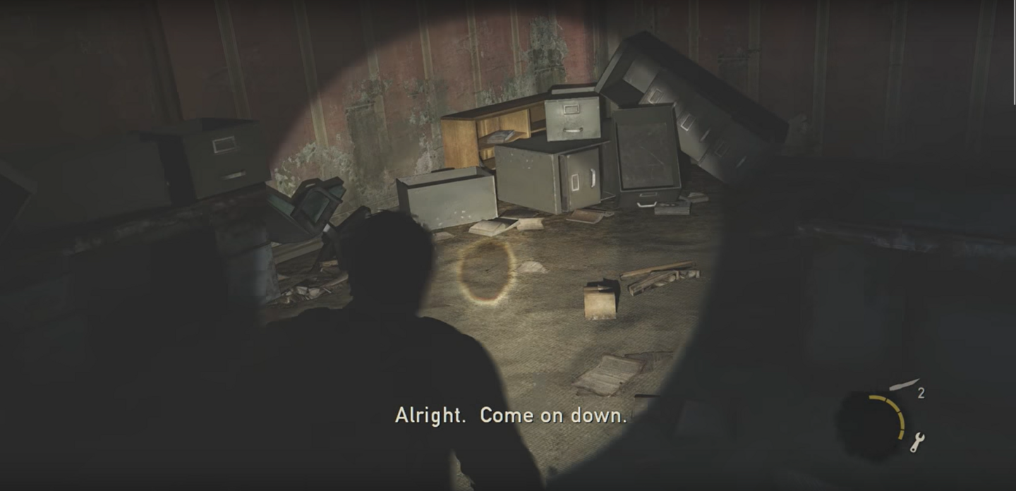 Почти все помещения здесь, балуют нас трупами, разной степени целостности. Тот, что встречает героев у двери, выглядит «pretty fresh» и лежит здесь как знак: «дальше идти опасно».