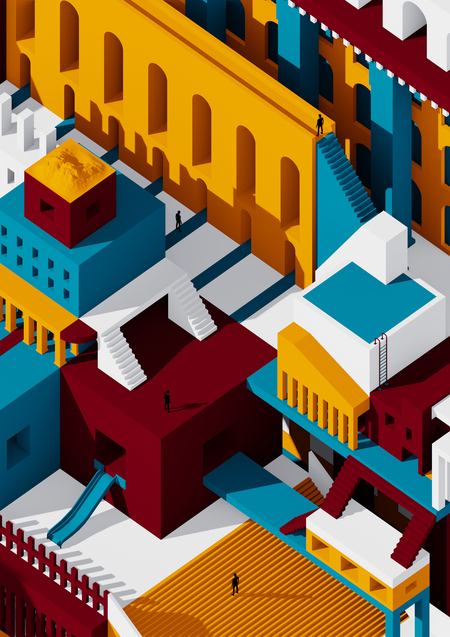 Это будущее, в котором нет движения. Страны стремятся к автономии, люди хотят изолироваться в своих домах. В новых городах не на что смотреть — застройка плотная, каждый кубический метр используется эффективно. По улицам нужно двигаться как можно быстрее. Дома можно увидеть весь мир через экраны. Экран интереснее, чем вид за окном, но то, что там показывают, едва ли существует.
