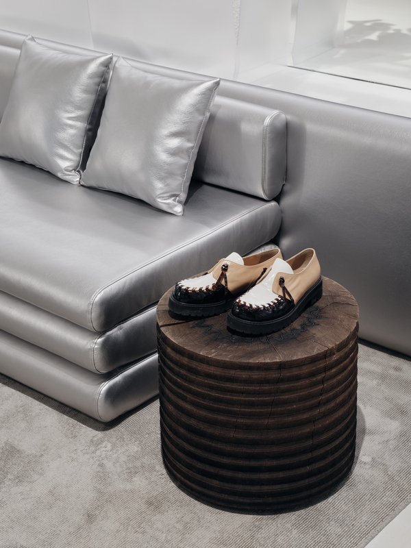 В рамках своей авторской концепции архитекторы стремились отойти от ощущения магазина к клубному пространству, ведь для таких современных проектов важно коммьюнити — в такой шоурум люди приходят круто провести время, обсудить новости мира моды, рассмотреть детали новых коллекций, а не просто купить вещь. Бутик состоит из двух основных зон — первый зал с островом и стойкой продаж и второй большой лаунж-зал.