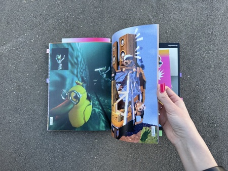 дополнительно к первому выпуску журнала я создала мерч, в который входит папка-сумка, напечатанная на 3D принтере, и 2 стикерпака с эмоджи, которые я сама сгенерировала (стикеры можно приобрести в телеграмме далее)