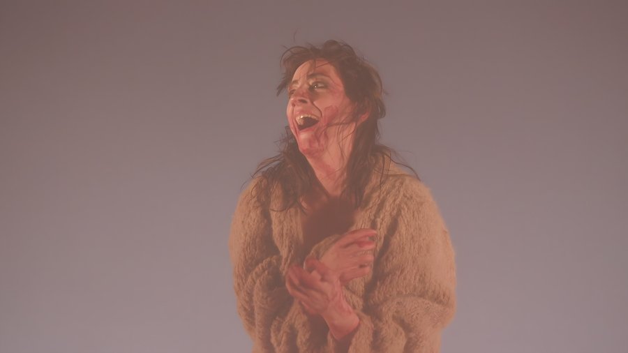 Леди Макбет почти не делает резких движений. Её тело — зажатое, напряжённое, словно под внутренним давлением. Жесты короткие, минимальные, мимика сдержанная. Даже в момент подстрекательства к убийству голос звучит не агрессивно, а скорее отстранённо. В этом трактовании опасность кроется не в ярости, а в молчаливом бездействии и отрешённости.