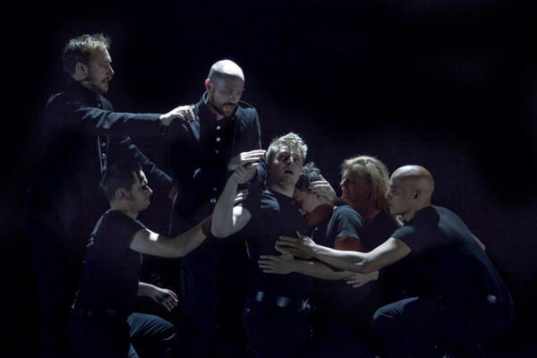 Бутусов создаёт на сцене психофизическую воронку. Пространство спектакля — это не замок, не ландшафт, а поле внутренней турбулентности, где персонажи разрываются между желанием, страхом и самоуничтожением. Визуальный язык — контрастный, хаотичный: чёрное и красное, тени, экспрессивные проекции, постоянное движение. Макбет и Леди Макбет здесь как два вихря, сталкивающихся и уничтожающих друг друга.