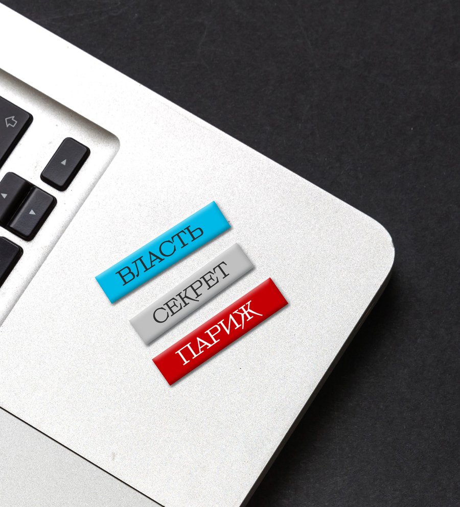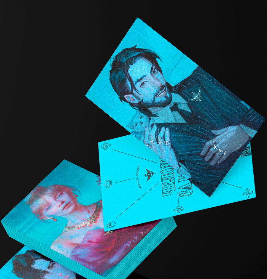 Первая часть мерча — это папка c приглашением на презентацию книги, 3D-стикерами и визиткой автора.