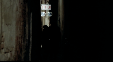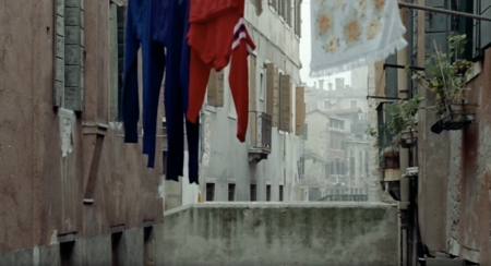 Отдельно можно отметить синий цвет. У главного героя синее пальто, ближе к концу фильма мы всё больше наблюдаем переход от серых оттенков Венеции, к синим глубоким тонам.