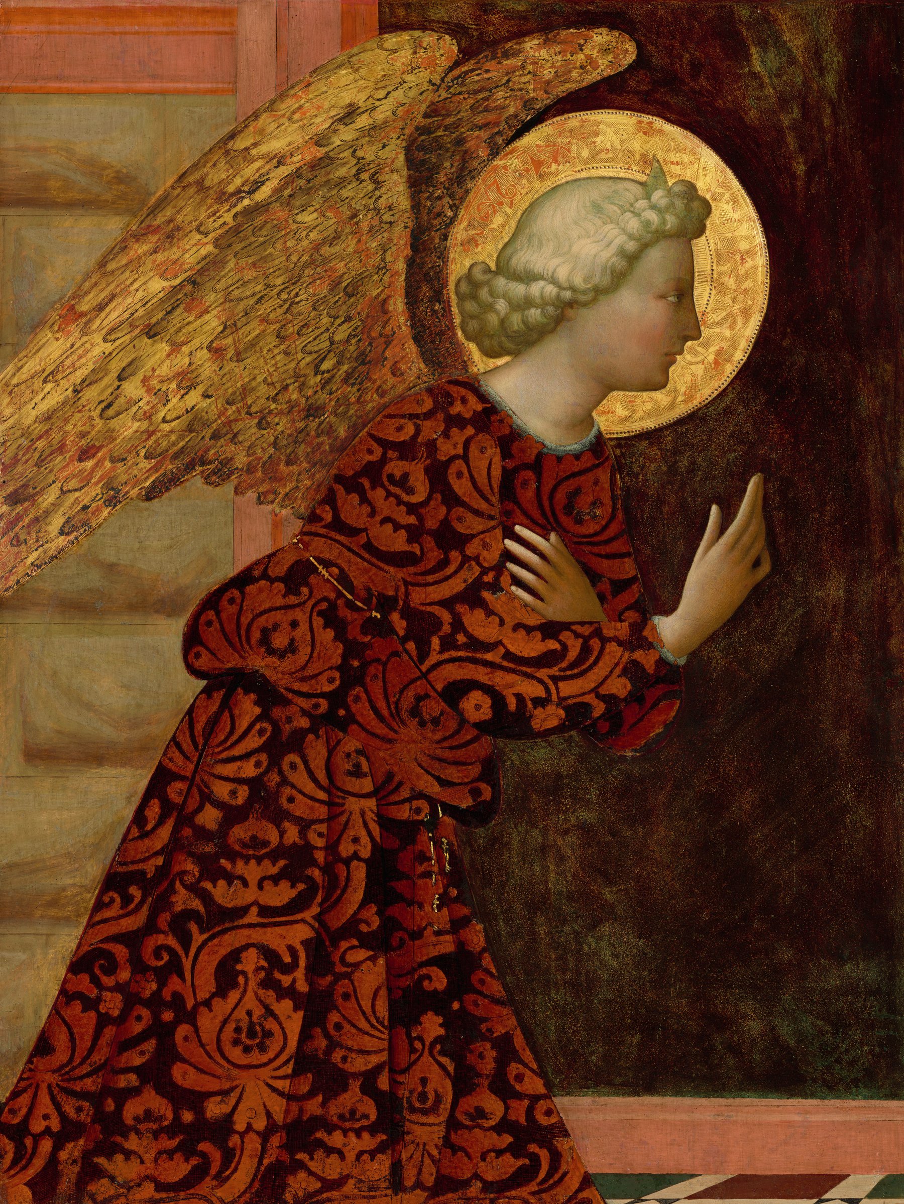 Работа Мазолино да Паникале «Архангел Гавриил» изображает в профиль светловолосого ангела, смотрящего вправо, за пределы холста на Деву Марию, извещающего ее о том, что она станет отцом Спасителя, сына Божьего. Панель составляла парную композицию с «Девой Марией»; вероятно, это были панели небольшого алтаря, написанного около 1430 года, раскрывающего сюжет Благовещения. Произведение отличается сочетанием изысканной готической декоративностью в передаче облика ангела и его орнаментального одеяния вместе с новаторскими приёмами в области моделировки объема форм и поиска способов передачи пространственной глубины.