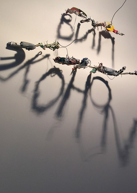 Объекты-надписи представляют собой связки из проволоки, изоленты, скотча, кусочков найденного технического мусора и т. д. Они как бы нарост на теле города и его неотъемлемая часть. Объекты помещаются в различные места в городе, примыкая к другим проводам и прочим техническим или строительным «несовершенствам» и полностью растворяются в пространстве. Но при включении в этом месте освещения — объект начинает отбрасывать тень, которая при внимательном взгляде может быть прочитана как надпись.