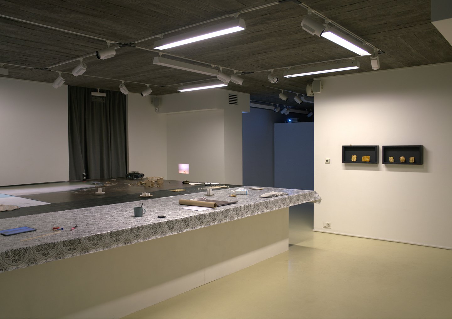 Что-то отсылает к топографии местности (соль, камни), что-то символизирует взаимоотношения (коробок спичек, фонарик). Разложенные на поверхности стола фотографии и карты демонстрируют искомые паттерны взаимодействия в иных условиях. Таким образом, фактура экспедиции представляется через документальный взгляд.