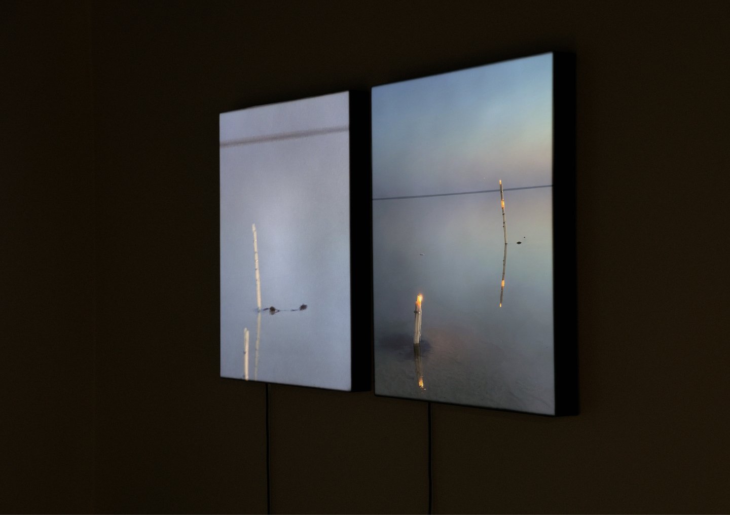 Анна Кондрашова. «Соларография 17.05.24–05.09.24, Эльтон». Фотография / Ярослава Трояновская. «Прерывистая линия». Цифровая печать Николай Онищенко. «Лакуна». Видео, 03'13''