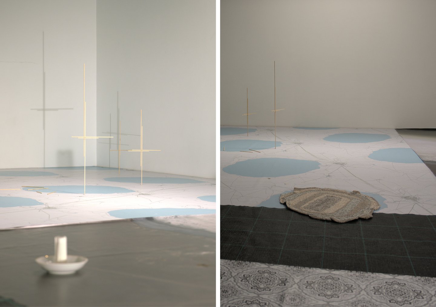 Об идее образа и ощущении материальности в местной соли размышляет Михаил Блосяк («Соль», объекты). Материальность сиюминутных объектов, созданных в ходе ежедневных практик, репрезентирована у Димы Филиппова («Время земли», объекты) и Ильи Романова («Сидушка из верблюжьей шерсти», объект).