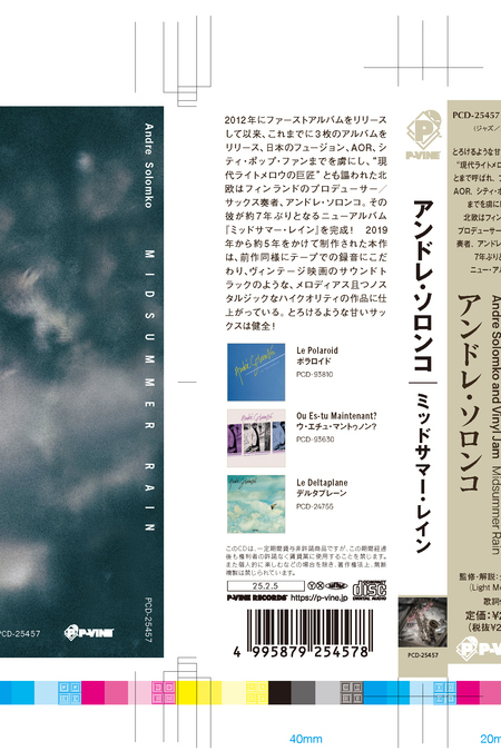 В середине февраля 2025 на Японский и азиатский рынок поступит новый альбом финского музыканта Andre Solomko. Новый альбом наполнен ностальгическим настроением по 70-м года прошлого века. когда мне поступило предложение сделать оформление CD, а позже будет выпуск винилового диска, я сразу отказался от идеи прямых цитат дизайна музыкальных дисков того периода. Мне хотелось передать ощущение прошлого в сегодняшнем дне.