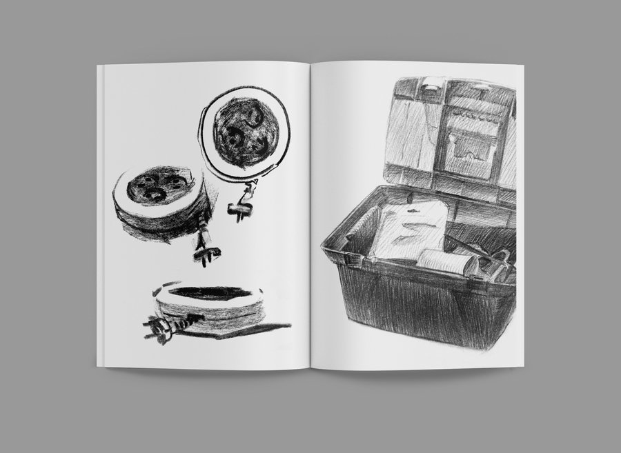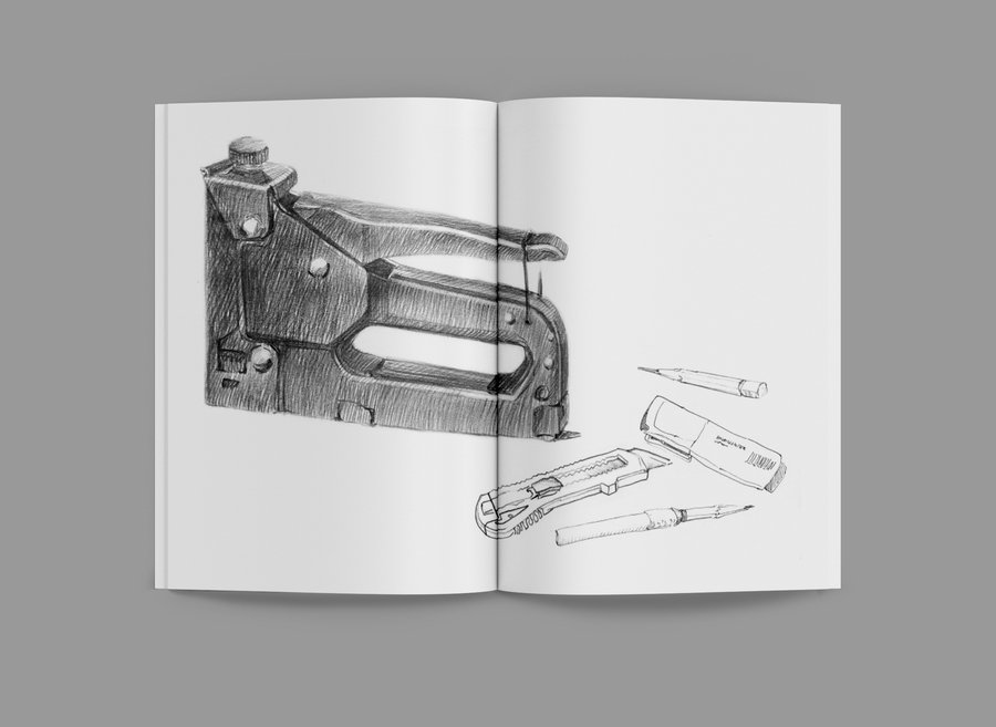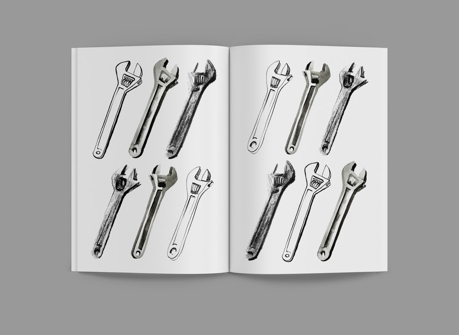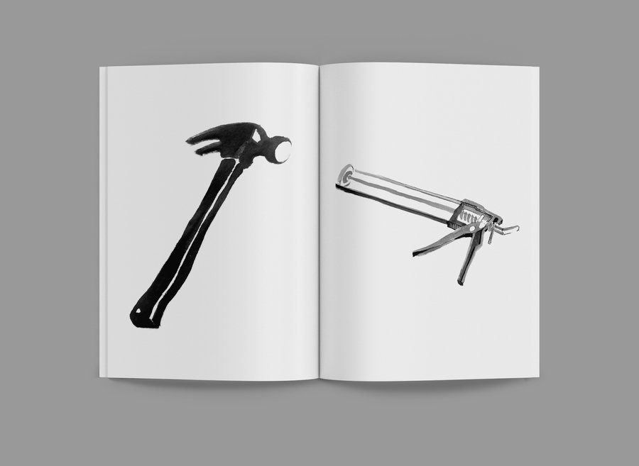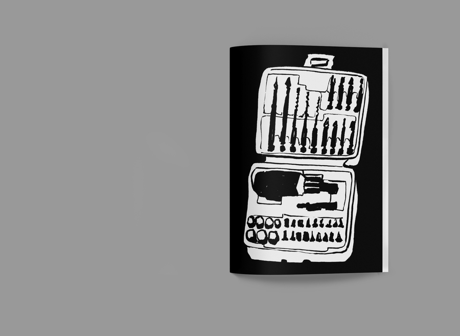 Недавно у меня был ремонт. Инструменты валялись повсюду и привлекали своим холодным блеском, резкими и неестественными формами. Я сделала об этом зин на 12 полос. Зин формата А5 стоит 500 рублей.