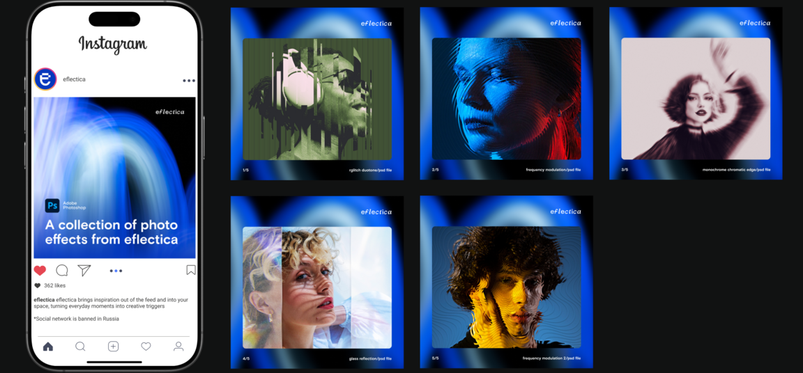 This choice aligns with Marshall McLuhan’s claim that «the medium is the message». The channel itself shapes perception and behavior, so selecting an online medium is not just distribution—it is part of what Eflectica is as a service built around speed, novelty, and constant visual updates [6]. For a platform about effects, the advantage is also technical: social media formats allow motion and micro-interactions—such as GIF-based covers and animated visuals—that cannot be reproduced in print, making the communication feel more native to digital post-production and more efficient for trend scanning.