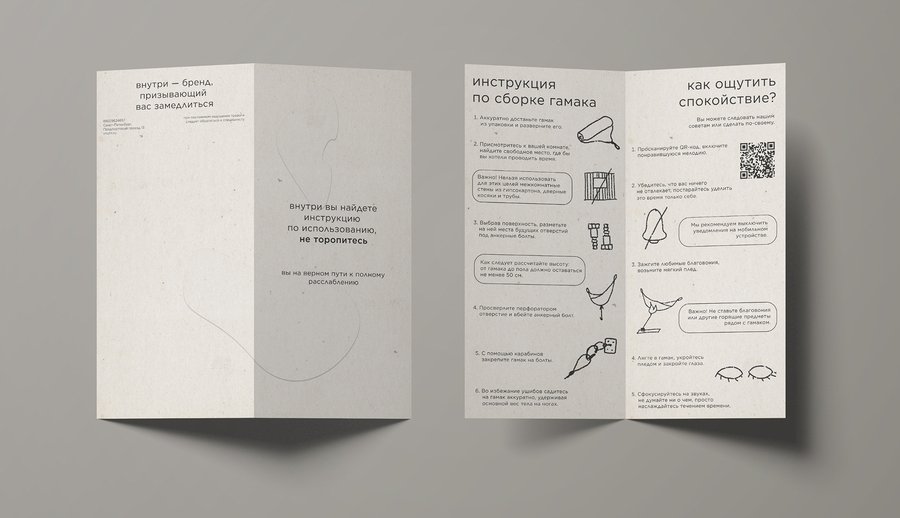 The concept and corporate identity of the «vnutry» brand is based on the metaphor of a cocoon: inside the cocoon is a butterfly, inside the hammock is a person, and inside the person is tranquility. Therefore, the logo has a natural shape and is customizable for each medium.