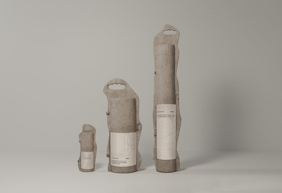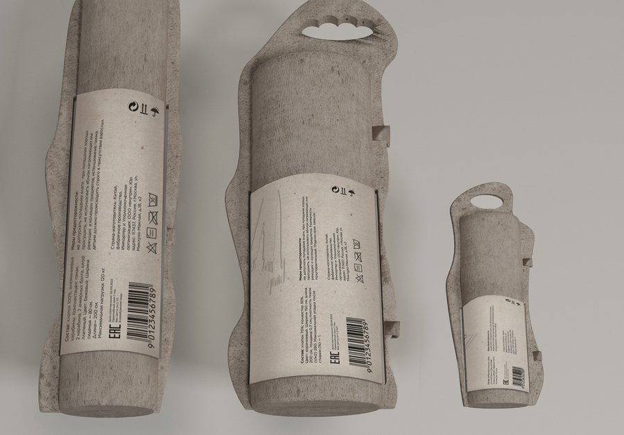 The product packaging is made of pulp cardboard, an eco-friendly material. Each package resembles the natural shape of a cocoon and has a shell with all the technical and image information, which functionally protects the product from premature opening. The packaging has an embossed design on the front.
