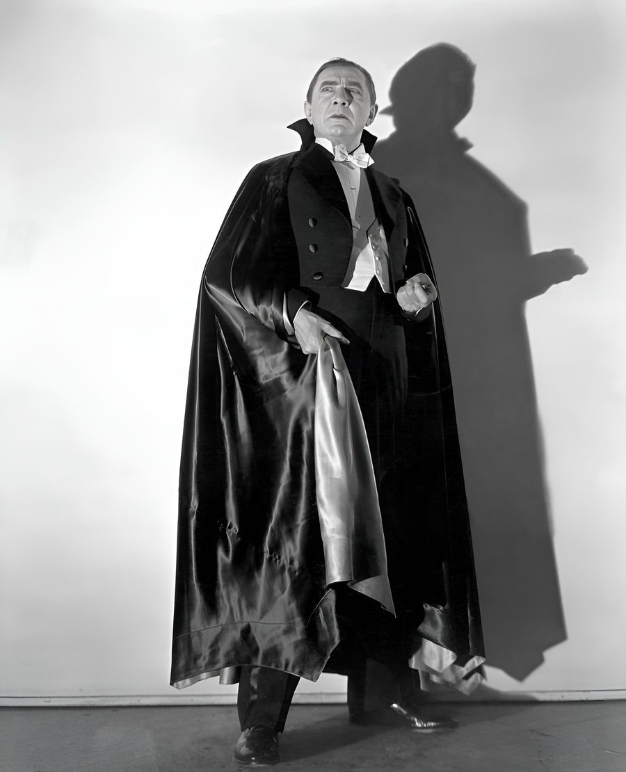 Воплощение Дракулы Белой Лугоши в одноименном фильме от Universal Studios положило начало классическому иконографическому образу вампира как аристократа с элегантным костюмом и театральной манерой. Лугоши появился на экране в черном фраке с белым жилетом, шелковом плаще с высоким воротником, и узнаваемой густой прической с начесом, которая закрепила визуальный код вампира на многие десятилетия.