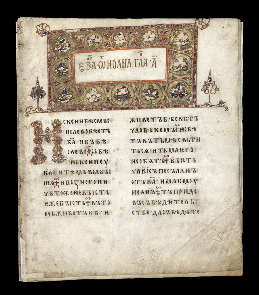 Первая страница Остромирово Евангелие, 1056–1057 гг., Новгород