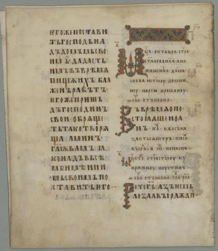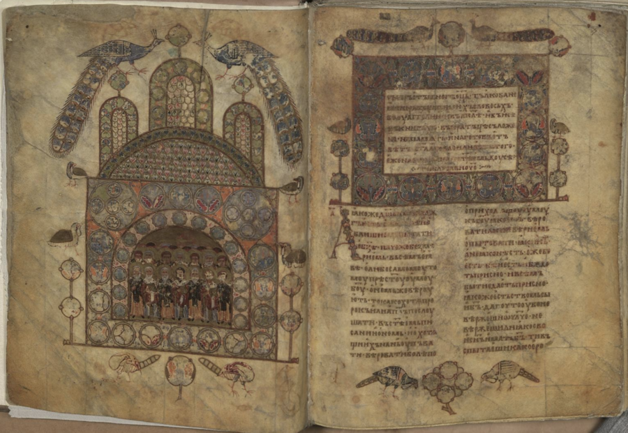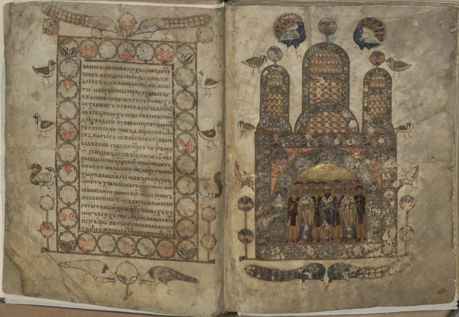 Я же буду изучать главный жанр — Евангелие, а точнее Остромирово Евангелие и Архангельское Евангелие. Также нужно изучить торжественную энциклопедию церковнославянской литературы — Изборник Святослава