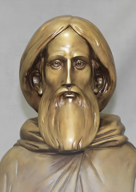 Скульптурное изображение святого воссоздано на основе анализа иконографического материала при кураторстве настоятеля Троице-Сергиевой лавры владыки Феогноста.