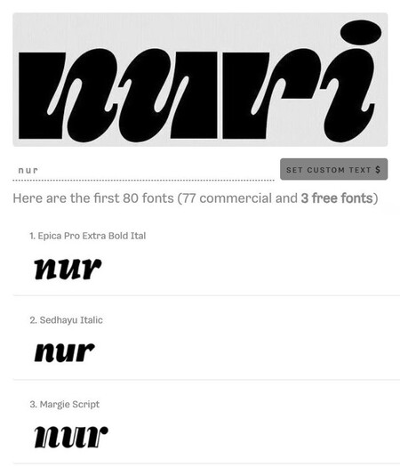 Инструментарий Abode color определил актуальную цветовую палитру по одной из визуализаций интерьера магазина. Далее сервис WhatFontIs проанализировал понравившийся референс шрифта с Pinterest (изображение слева) и представил похожие варианты.