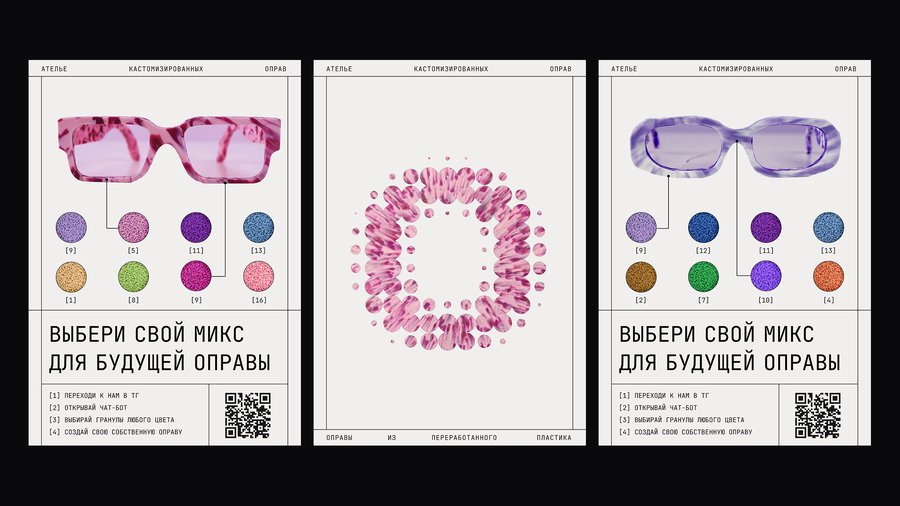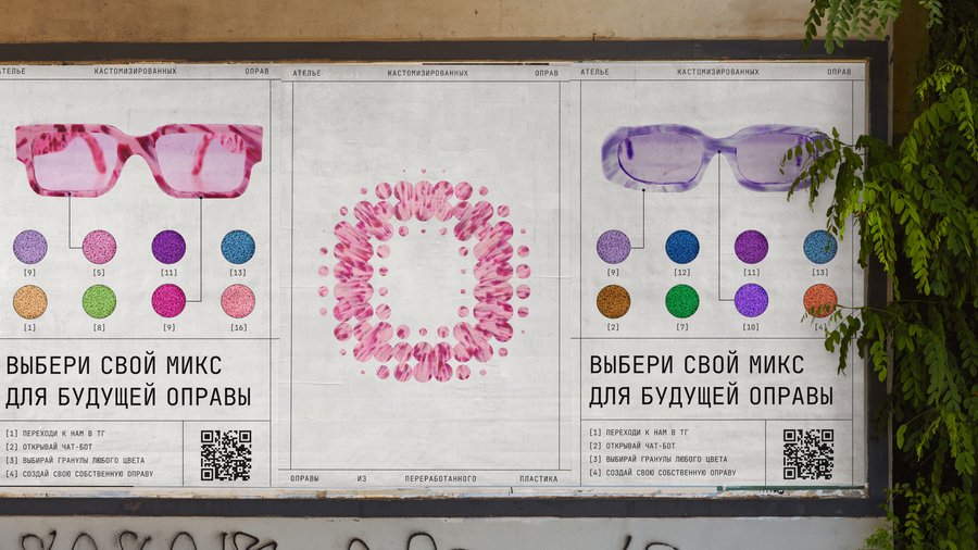 Дипломный проект посвящён созданию кастомизируемых оправ из переработанного пластика и разработке дизайн-системы для личного бренда Opticist.