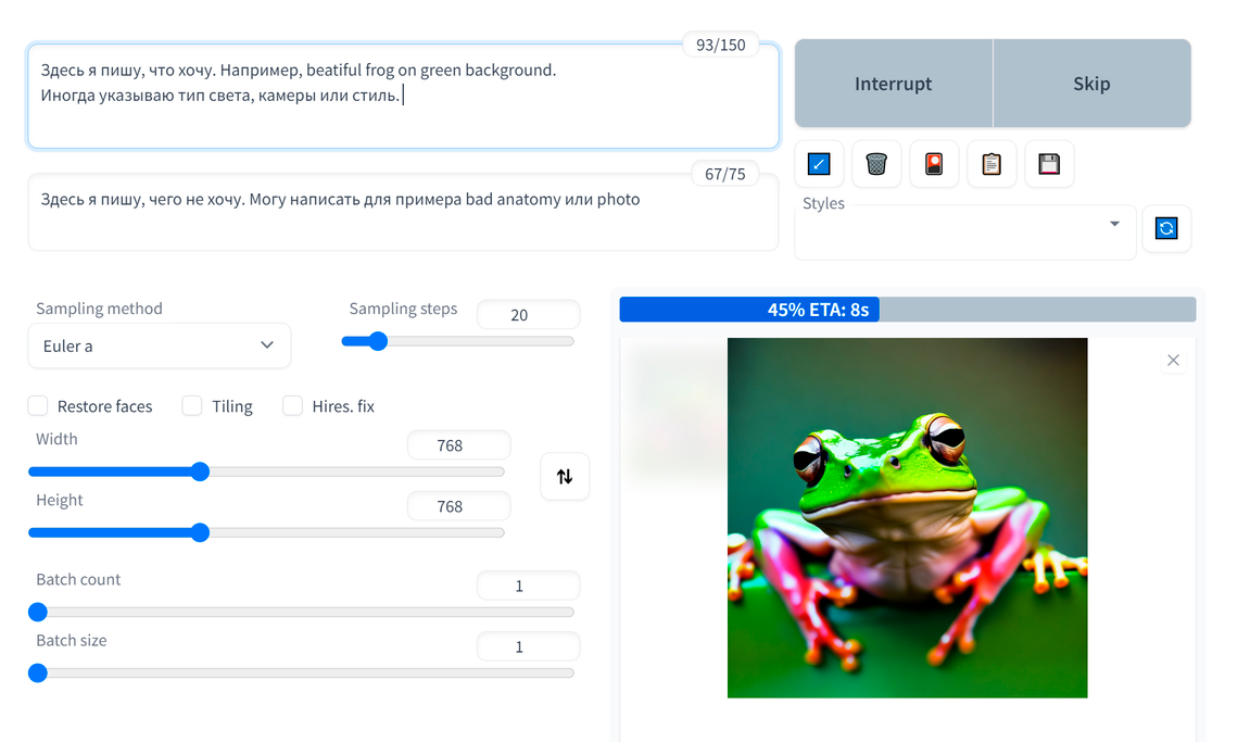 Пример настроек Тинькофф Журнала в Stable Diffusion для генерации баннеров, 2023