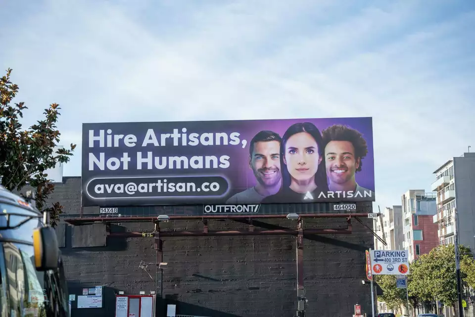 Билборд с рекламой ИИ-сотрудников Artisan, 2024