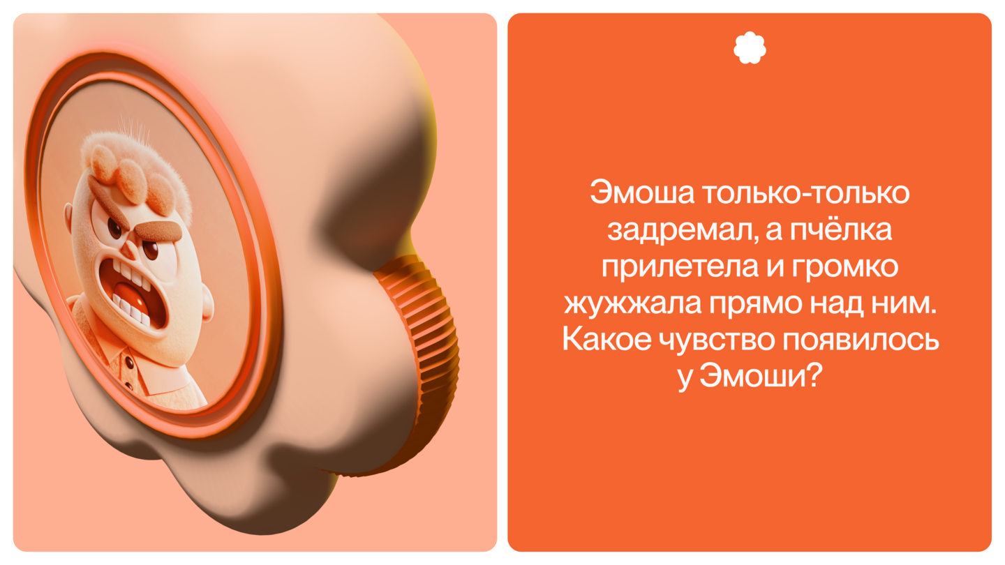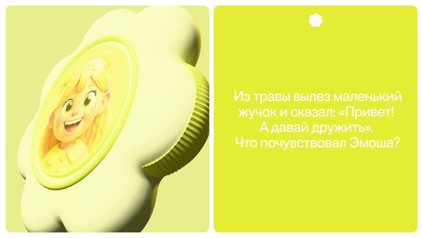 Когда ребенок называет эмоцию, родитель обсуждает с ним, почему именно это чувство возникло у Эмоши, помогая провести параллель с личным опытом ребенка.