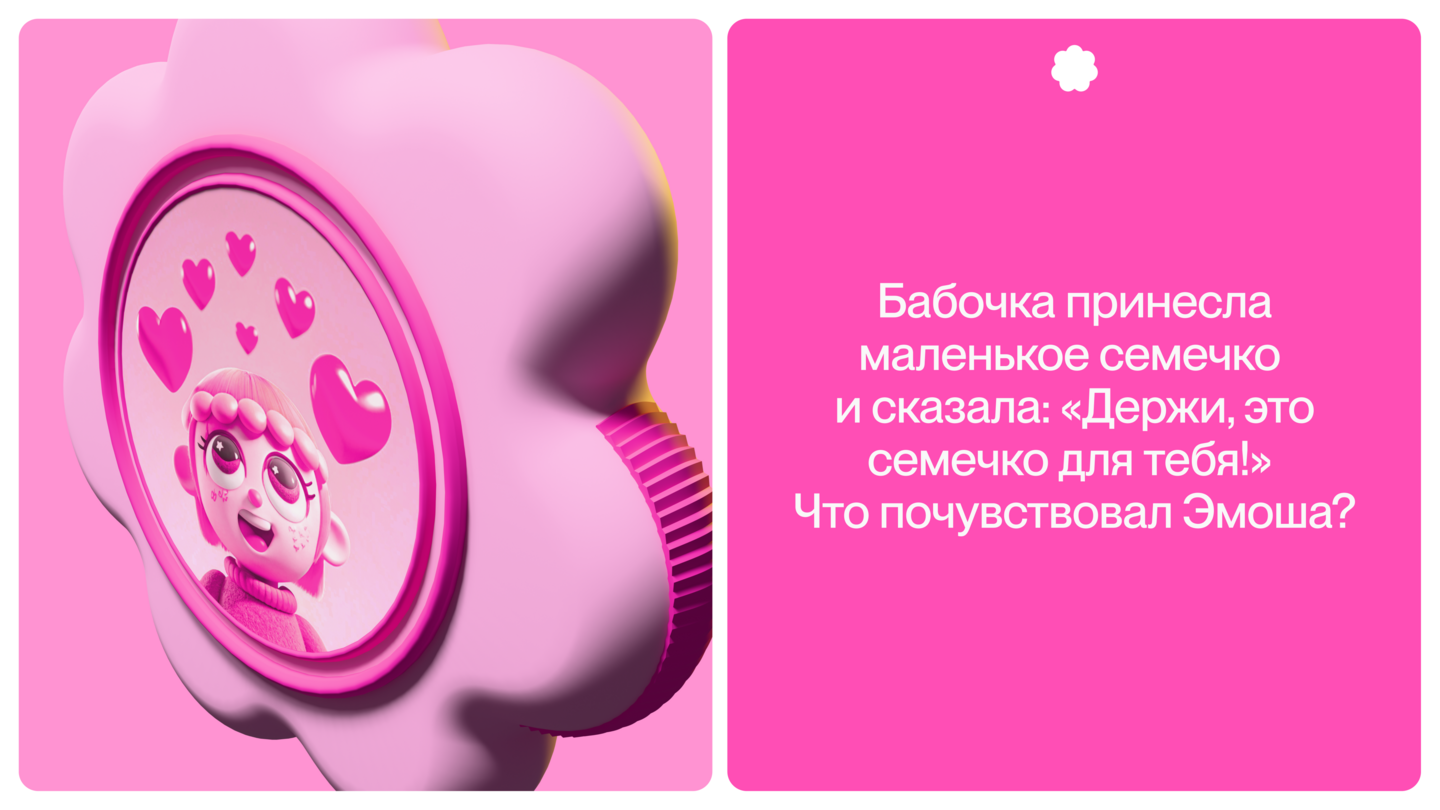 В комплект входят сама игрушка «Эмоша» и набор карточек с историями из жизни персонажа, с помощью которых ребенок учится определять эмоции вместе с родителем.