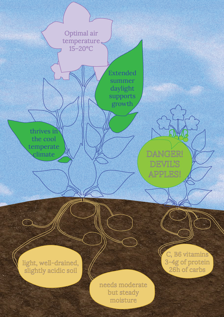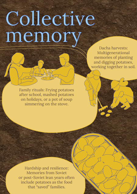 В итоге каждый из нас создал серию из 5 постеров, посвященных одному из знаковых русских ингредиентов. Я выбрала картофель как символ стойкости в трудные времена, семейных ритуалов и теплых воспоминаний.
