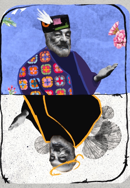 Игральная карта — довольно любопытный объект, через призму которого мне было интересно передать непростую судьбу Сергея Параджанова, без лишнего трагизма, с юмором и легкостью, присущим самому режиссёру. Его артистизм и умение быть абсолютно разным натолкнули меня на такое решение. Я изменила привычную симметрию игральной карты, чтобы найти новый смысл. Тема колоды и игры не раз возникает и у самого Параджанова. В традиционной карте присутствует единый зеркальный персонаж. Здесь же я изобразила полярность состояний: контраст между периодами яркого творчества на свободе и тяжёлого заточения. Но Параджанов остаётся собой и в самый мрачный период своей жизни. Даже колючесть проволоки здесь не бесконечна. «Я отомщу миру любовью» — лейтмотив всей жизни режиссера. Вторя ему своей работой я хотела напомнить себе, что даже во мраке Человек может оставаться свободным.