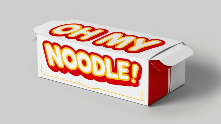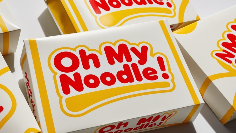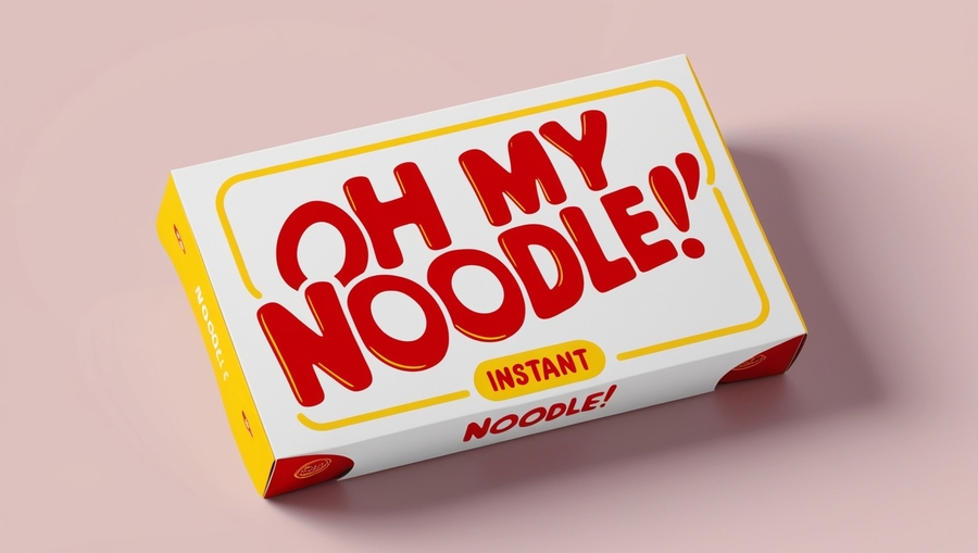 Promt: Create a package for instant noodles called «Oh, my noodle!» in yellow and red tones.