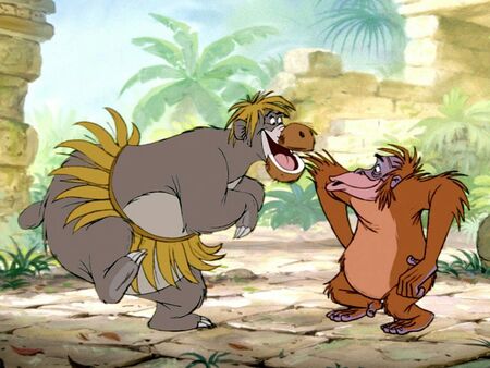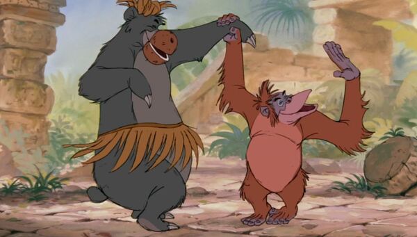 Особенно запоминается сцена в руинах древнего храма, когда появляется Король Луи, озвученный Луи Примом. Он подхватывает этот джазовый поток, как ведущий вокалист в клубе, и анимация подчёркивает его пластику: широкие жесты, безумный ритм, анимационные акценты — всё вместе делает его настоящей джазовой звездой джунглей.