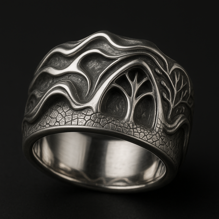 Ring inspired by Walt Disney Concert Hall by Frank Gehry. generated in Sora.