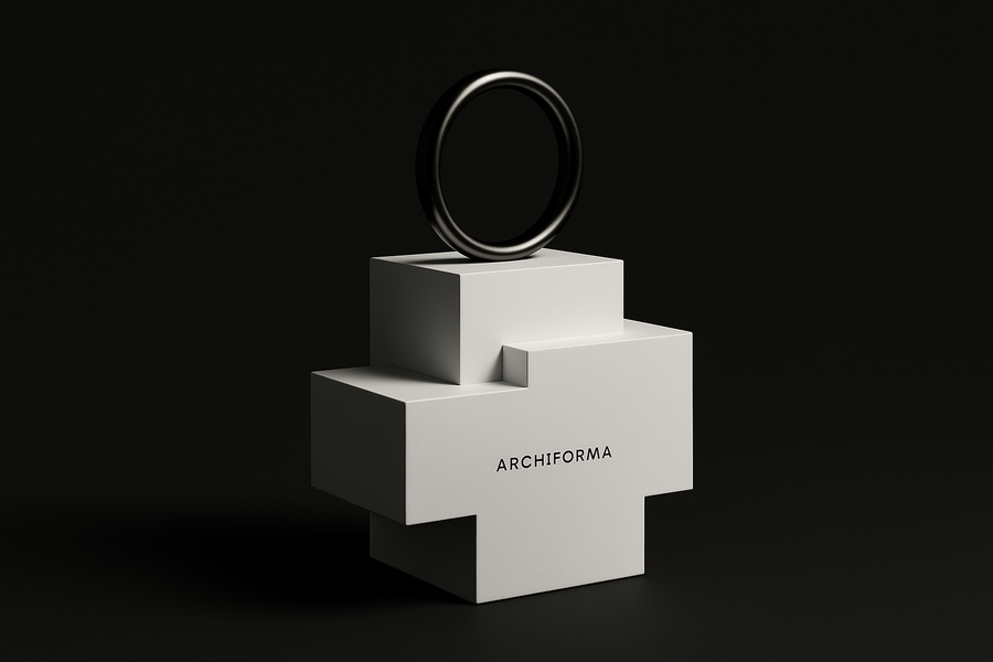 Branding elements for ARCHIFORMA. Generated in Sora.