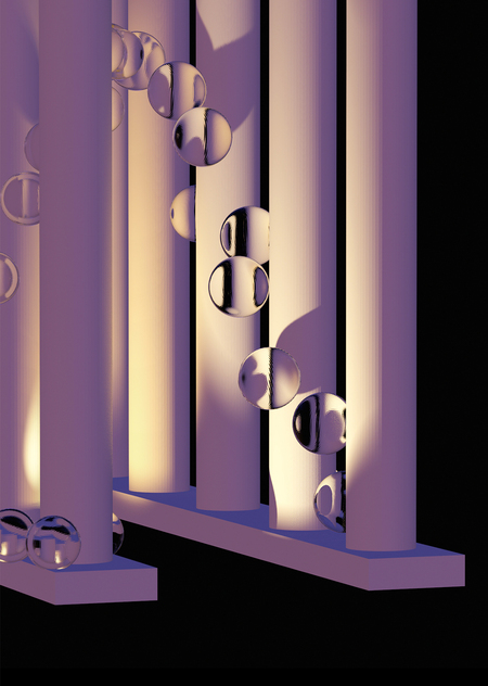 Я узнала, что главную круглую колоннаду усадьбы называют «ожерельем Елизаветы», поэтому решила создать световую инсталляцию, основываясь на этом — воссоздать образ жемчужного ожерелья, хаотично проходящего, то рассыпающегося через колоннаду. В качестве «жемчужин» я взяла прозрачные сферы, которые будут сверкать бликами под направленным на них светом.