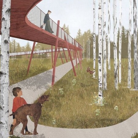 • Материалы: песок, валуны, сосновые стволы, корни, мхи.