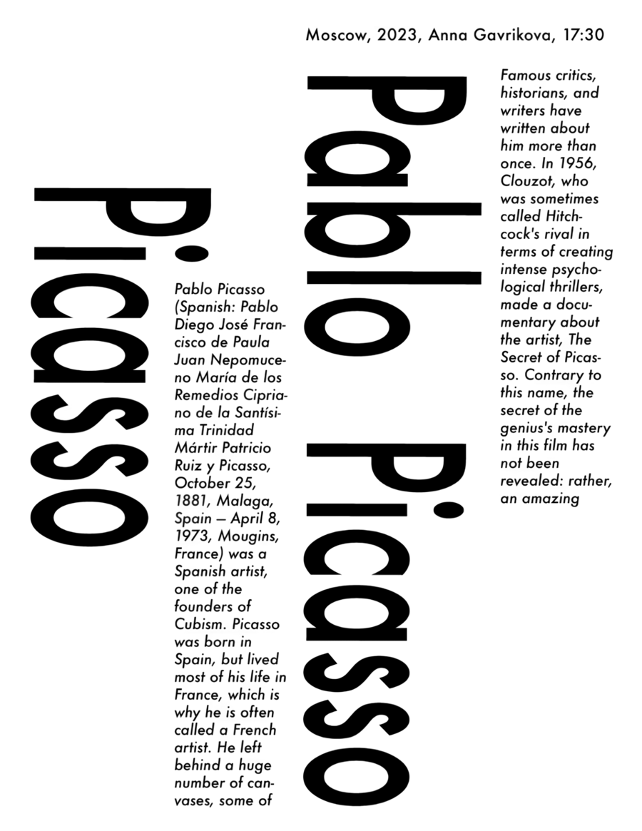 3 модуль: ● Лекция по истории типографики ● Понятие шрифта в типографике: строение шрифта, начертания, гарнитура, кегль, кернинг, трекинг, контраст, глифы ● Основы верстки ● Возможности модульной сетки ● Лекция об истории плаката ● Способы создания плаката