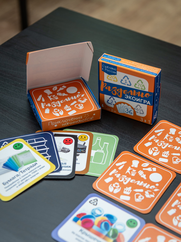 Планы проекта: Внедрение игры «РазДельно» в различные учреждения и развитие коммерческого направления для выхода на самоокупаемость. В разработке игры: «Экопривычки» — про экологичные бытовые привычки, «Экопрофессии» — о профессиях будущего, «Экошаги» — для прогулок на природе. Сейчас реализуется проект «Зов предков» при поддержке Президентского фонда «Природа». Игра «РазДельно» уже распространилась тиражом свыше 1500 экземпляров по России и СНГ. Другие https://disk.yandex.ru/i/D8ji7i2wJwq0IQ