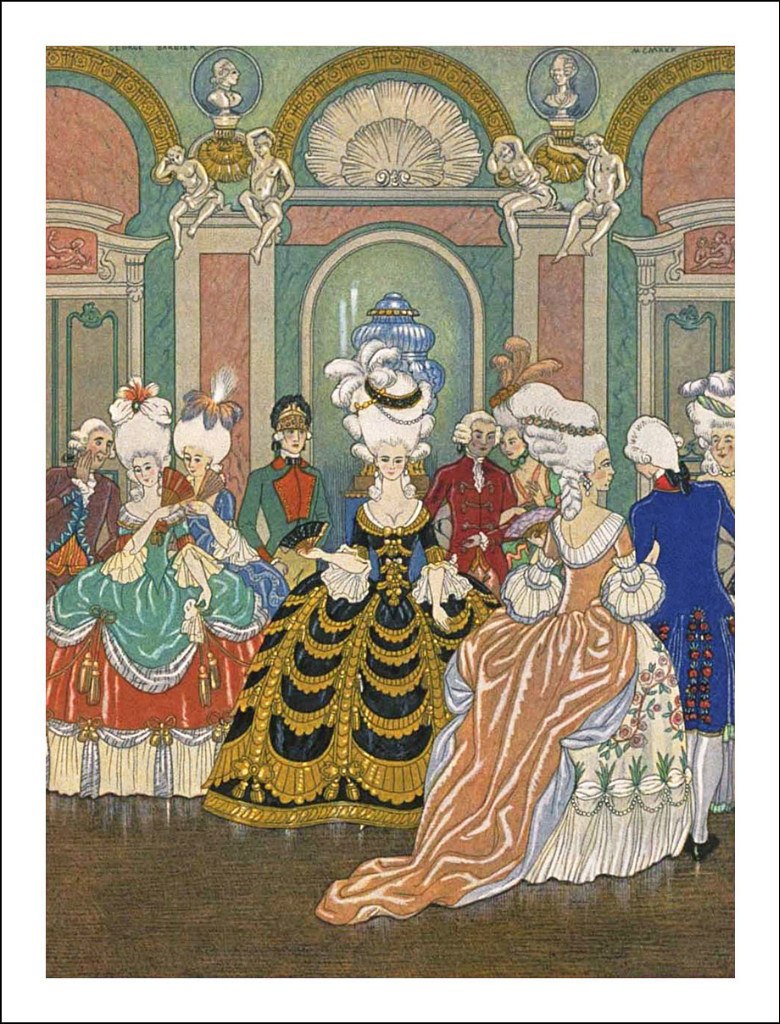 ЖОРЖ БАРБЬЕ (Georges Barbier, 1882-1932): Мастер изысканных линий и театральных сцен. Его работы для газеты «du Bon Ton» сочетали неоклассику с ар-деко, часто изображая женщин в платьях от Пуаре и Ланвин. 1. Журнальные иллюстрации 850+ (газета «du Bon Ton» 320 работ, Harper’s Bazaar 110 обложек и эскизов Vogue (Франция/США): 70 публикаций). 2. Авторские альбомы: 17 костюмов для театра, 30 гравюр, французский альманах Falbalas et Fanfreluches — 60 иллюстраций). 3. Иллюстрации к книгам: 45 изданий («Дафнис и Хлоя» (1925), «Манон Леско»(1928), Пьер Луи «Песни Билитис», 1926 и другие). 4. Театральные работы: 22 постановки, костюмы для русского балета (1921–1924), 12 спектаклей (опера «Кармен» (Монте-Карло, 1929 40 эскизов) и другие). 5. Плакаты/афиши: 35. 6. Реклама духов, выставок, кабаре.