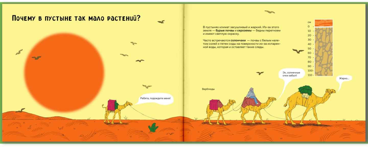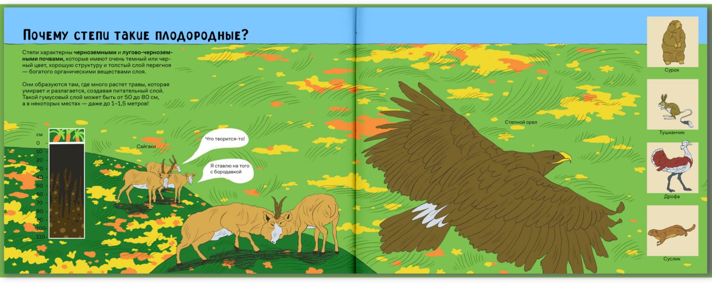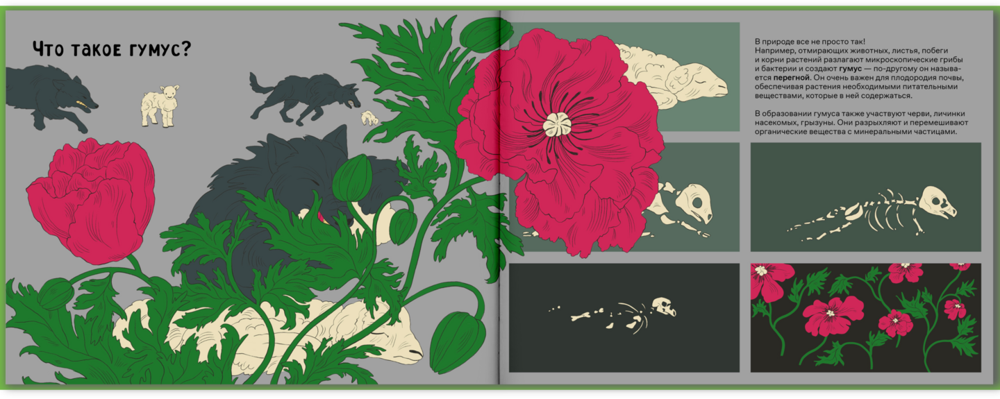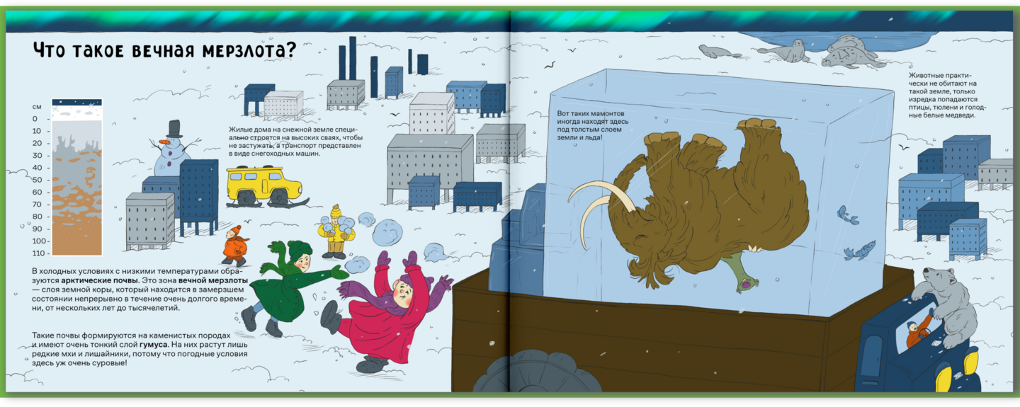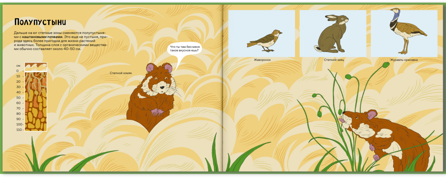 Мне было важно сохранить энциклопедический стиль книги, поэтому в текст введены различные тематические термины, а иллюстрации включают в себя инфографику в виде схемы среза почвы.