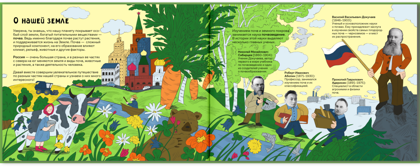 Нон-фикшн о земле и видах почв на территории России, где читатель погружается в увлекательное путешествие в разные места нашей огромной страны, изучая особенности почв, растений, животных и деятельности человека.