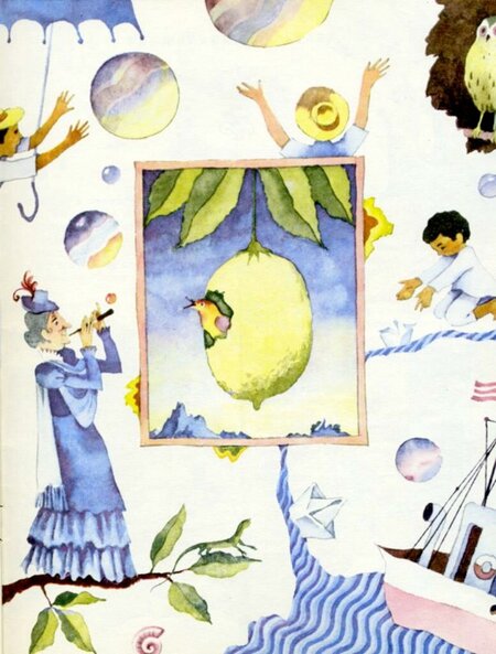 Иногда в иллюстрациях появляются метафорические элементы, вероятно, отображающие культурный «багаж» автора. Здесь мышиная ваза напоминает те самые сферические объекты на картине «Сад земных наслаждений» Босха.
