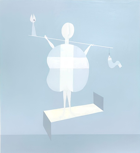 Эйдос в этом произведении состоит лишь из простых форм, однако находится он совсем не в абстрактном пространстве, мы видим приоткрытую дверь в комнату, очень похожую на одну из комнат детской квартиры Виктора Пивоварова. Так, трансцендентная сущность совмещается с одной стороны с реальностью, с другой с воспоминанием.