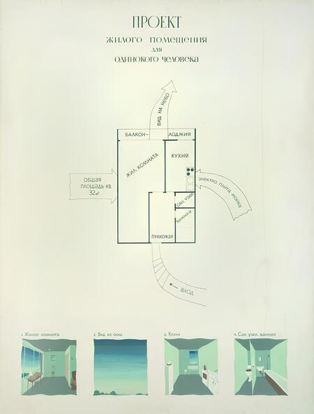 Виктор Пивоваров. Проект жилого помещения для одинокого человека. 1975.