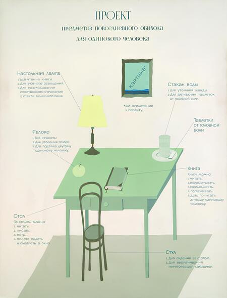 В проекте предметов повседневного пользования на стене есть картина. В приложении к этому альбому можно увидеть классические произведения в интерпретации Виктора Пивоварова, предназначенные для одинокого человека.