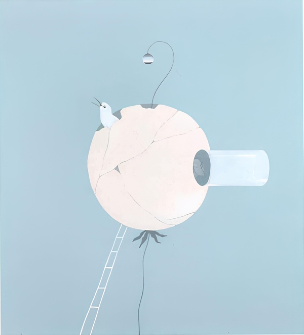 Эта работа — собирательный образ сфер на триптихе Босха «Сад земных наслаждений». Однако, у интерпретации совершенно другой смысл — это похоже на скорлупу одинокого человека, который выглядывает из нее и смотрит на мир через стеклянную трубу.